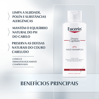 Eucerin Dermo Capillaire Champô Suave pH5 é um champô suave para um couro cabeludo sensível.