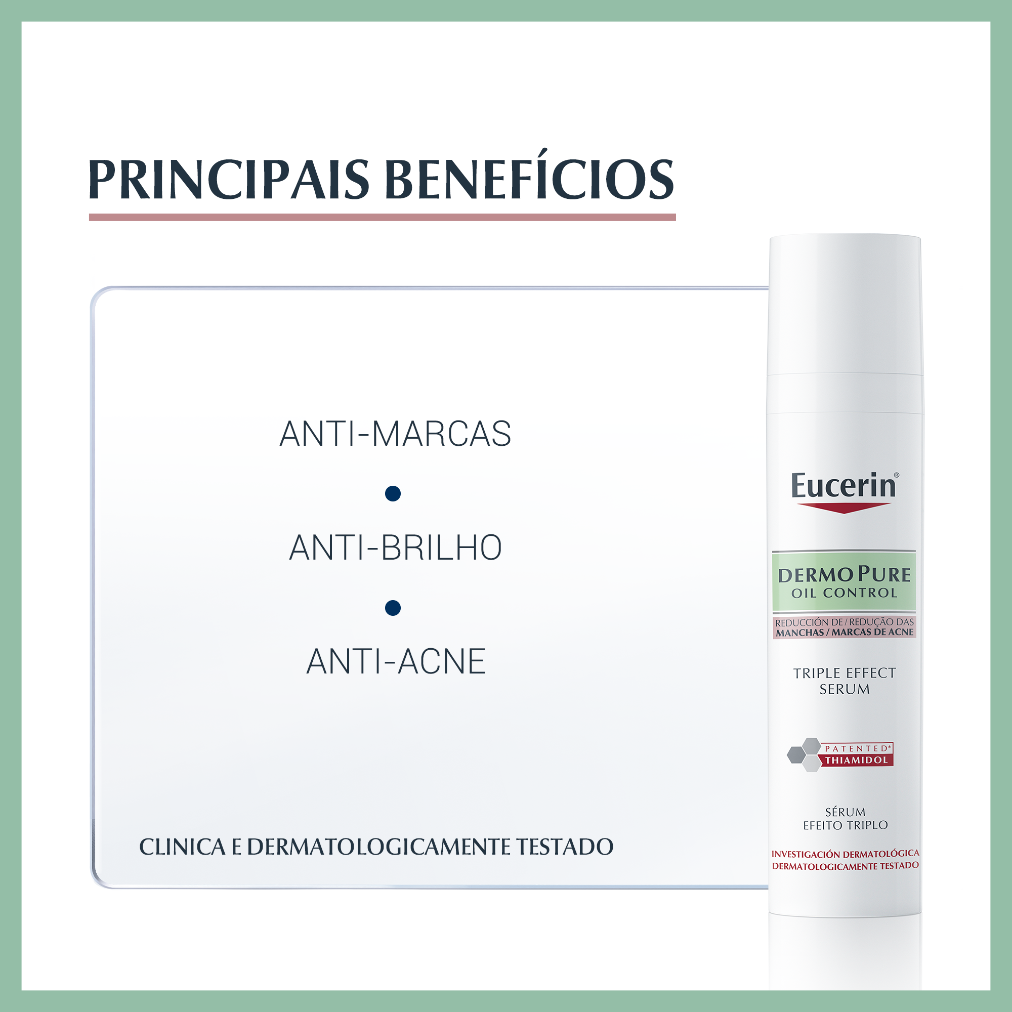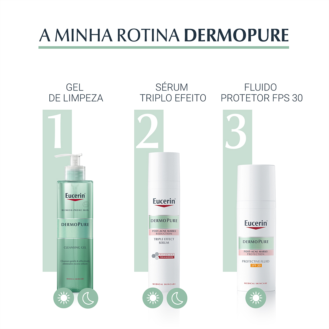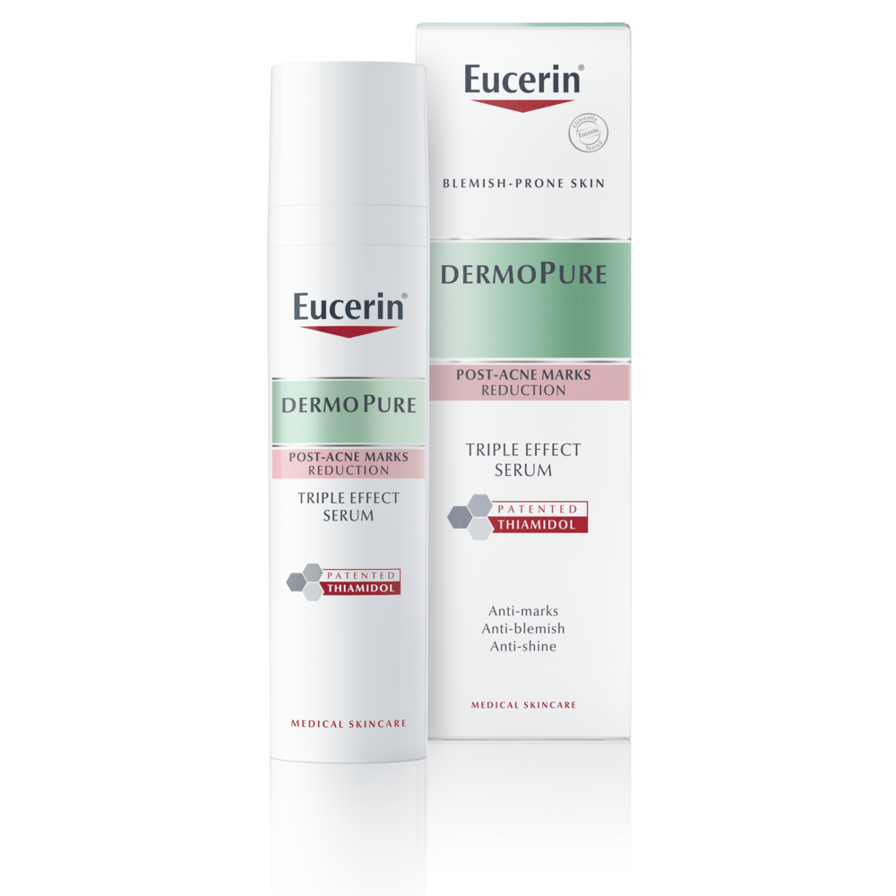Eucerin DermoPure Sérum Triplo Efeito é um sérum tripo efeito, antimarcas, anti-imperfeições e antibrilho.