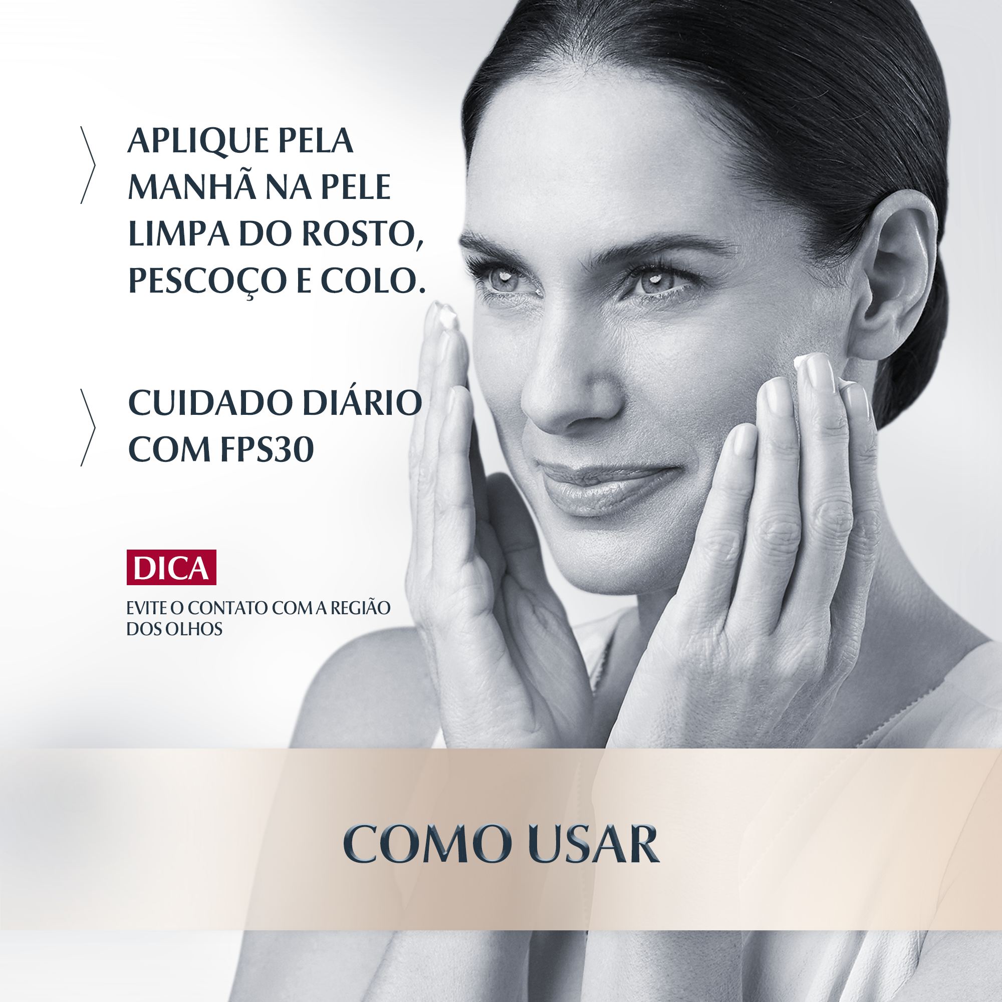 Este creme contém FPS 30 e um filtro UVA para prevenir eficazmente o envelhecimento da pele provocado pelos raios UV e o aprofundamento das rugas.