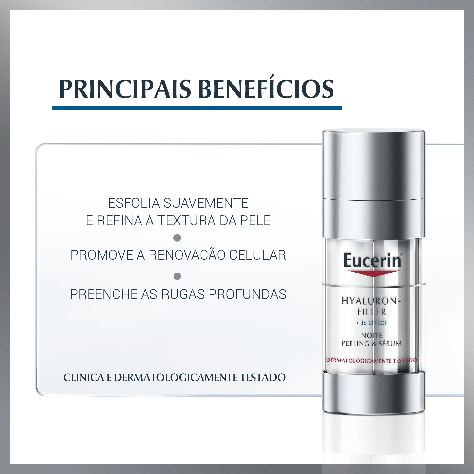 Eucerin Hyaluron-Filler Noite Peeling & Sérum é um sérum hidratante e com efeito peeling antienvelhecimento para todos os tipos de pele.