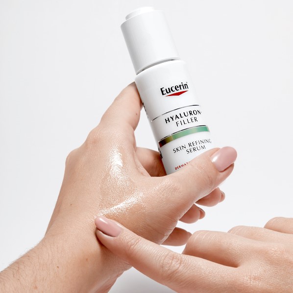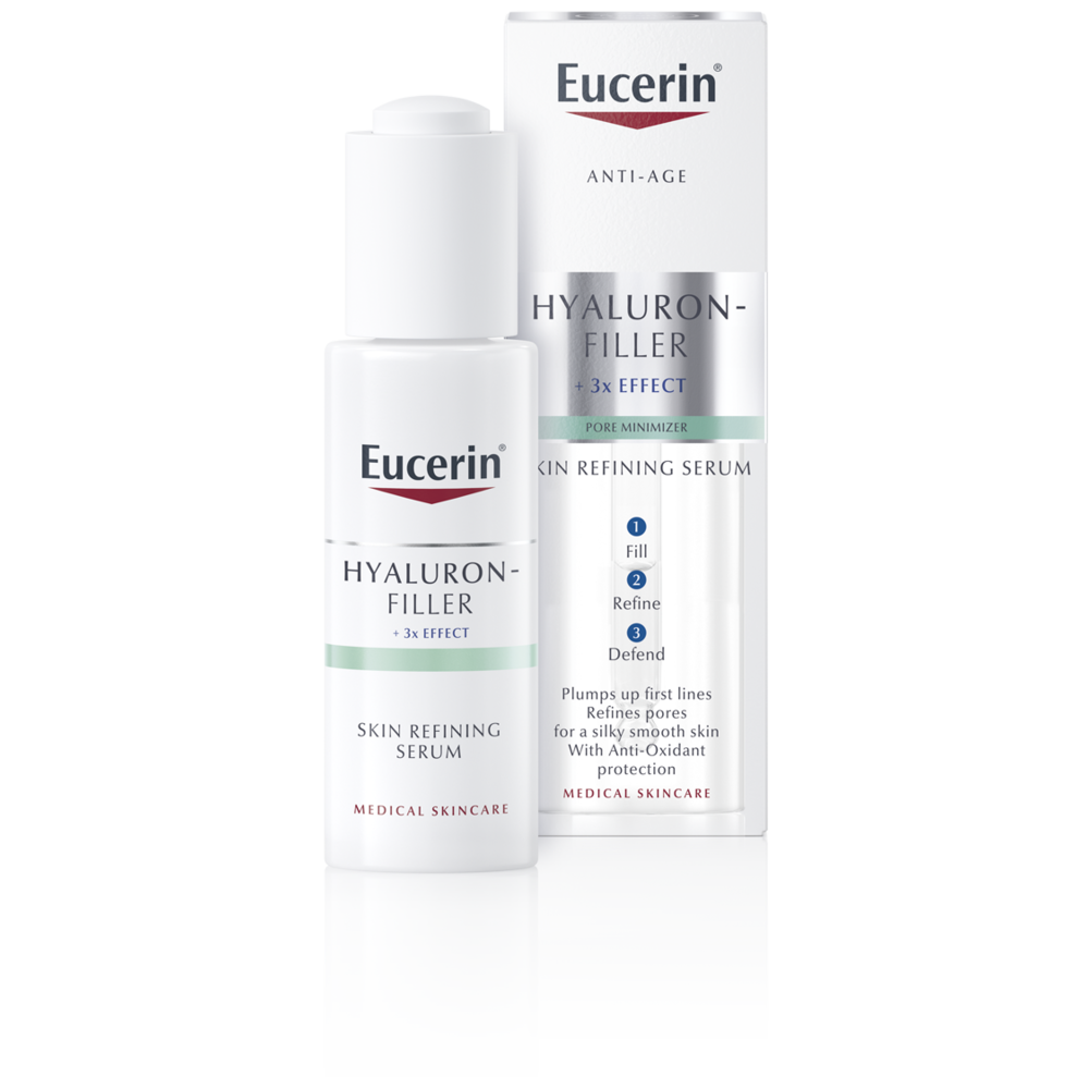 Eucerin Hyaluron-Filler Sérum Skin Refining é um sérum para primeiras rugas e sinais de acne, como poros dilatados.