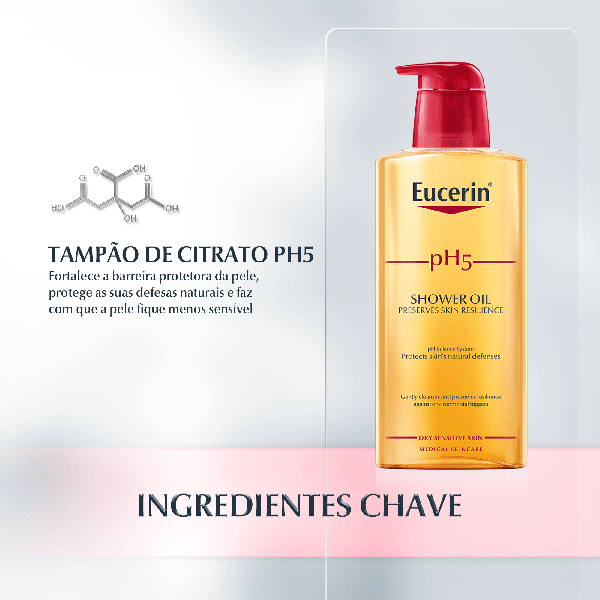 Eucerin pH5 Óleo de Duche é um cuidado de higiene corporal diária.
