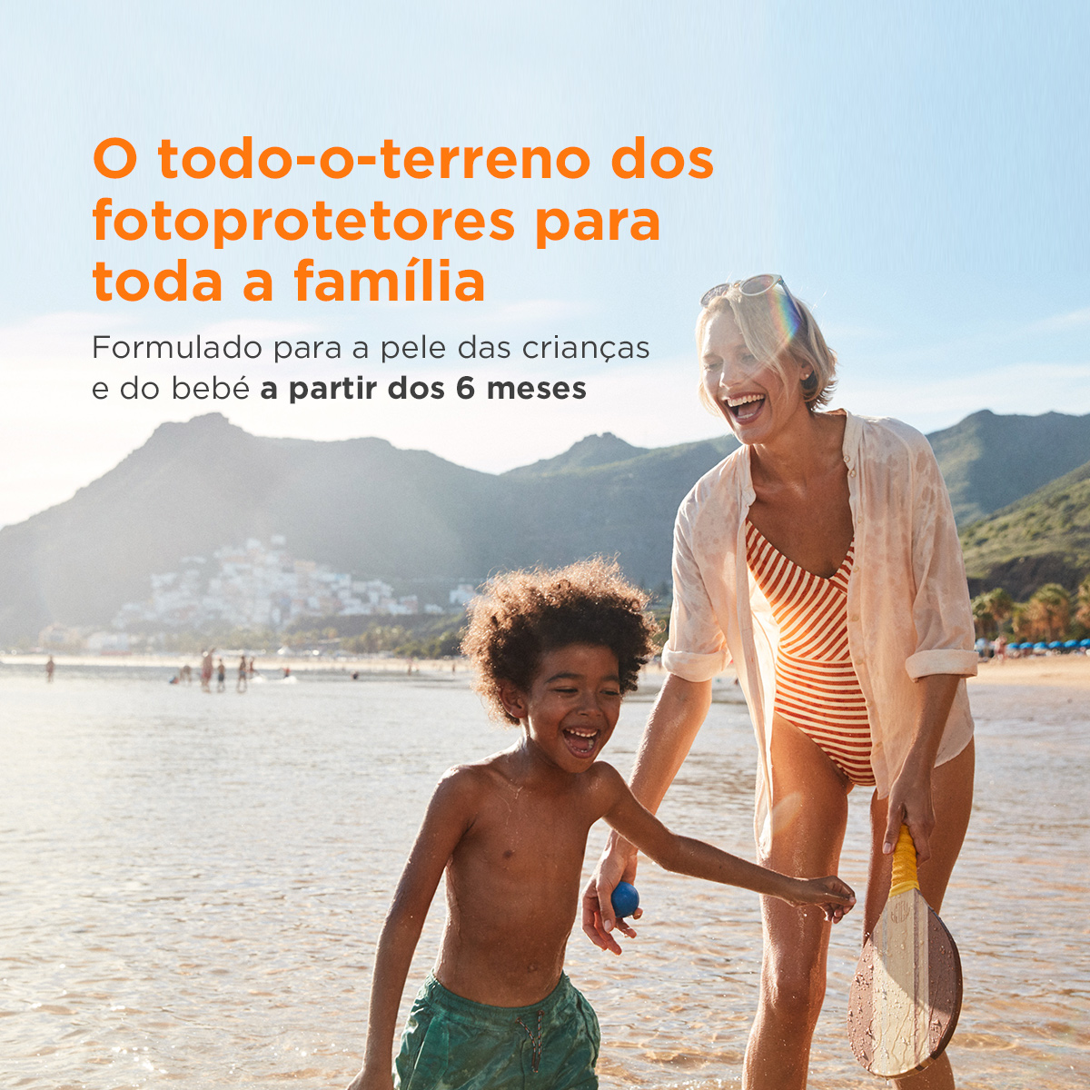 Especialmente formulado para a pele das crianças e dos bebés a partir dos 6 meses, assegura proteção muito elevada UVB e UVA (SPF50+) ao mesmo tempo que proporciona uma agradável sensação de frescura com um toque final sedoso e sem brilho.