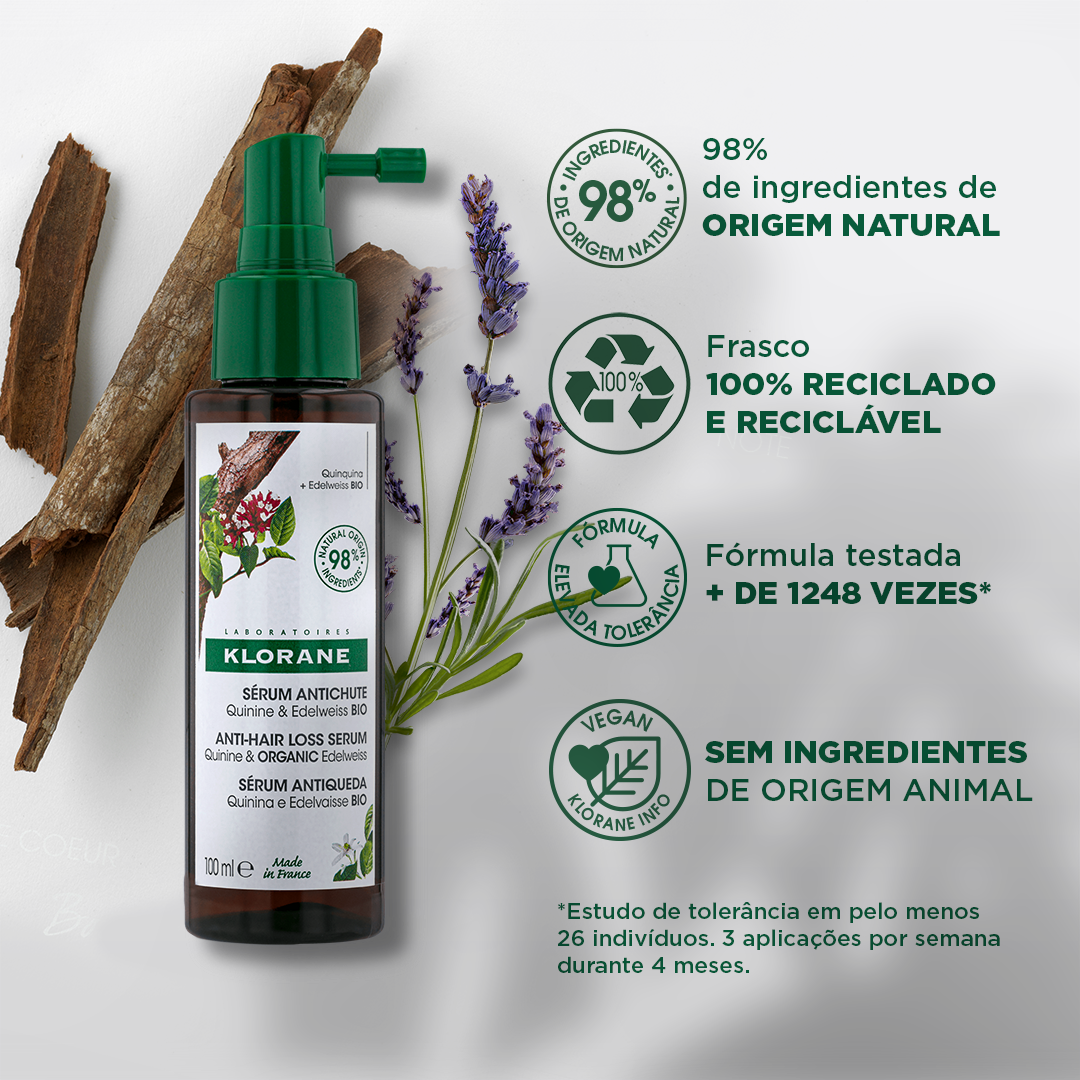 Klorane Capilar Sérum Quinina e Edelweiss Bio é um cuidado capilar concentrado que fortalece o cabelo, retarda a queda e estimula o crescimento.