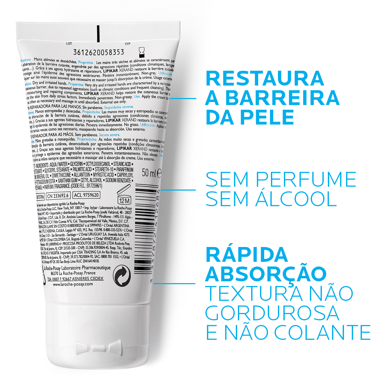 Graças aos seus componentes hidratantes e reparadores, o Lipikar Xerand é um creme que ajuda a restaurar a barreira cutânea, atuando como reparador enquanto protege a pele das mãos dos seus agressores diários.