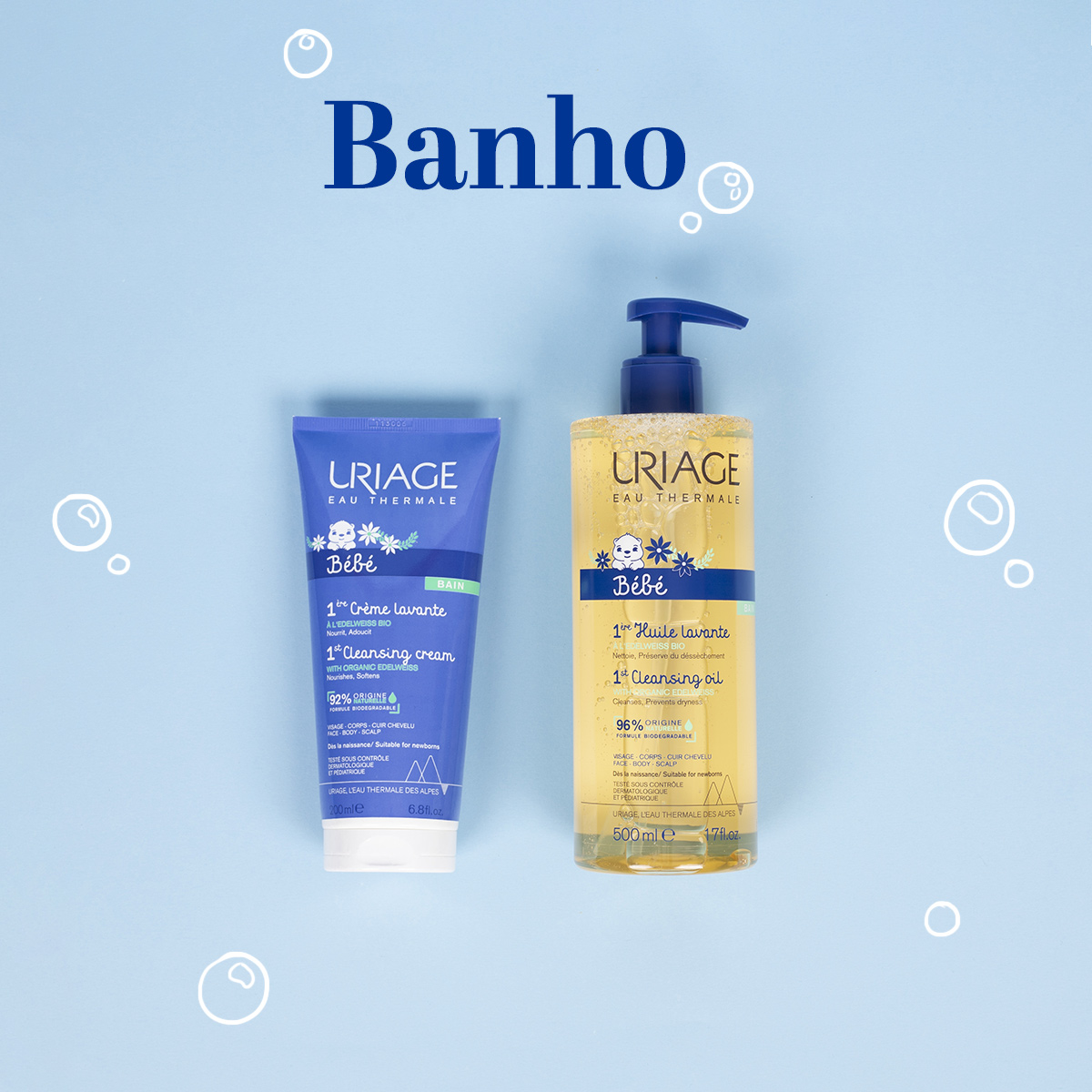 A sua fórmula com o Complexo Natural [Água Termal de Uriage + Edelweiss Biológico], combinada com tensioativos suaves, protege a pele do efeito secante da água e deixa uma película protetora sobre a mesma. Desta forma a pele recupera a suavidade e o conforto.