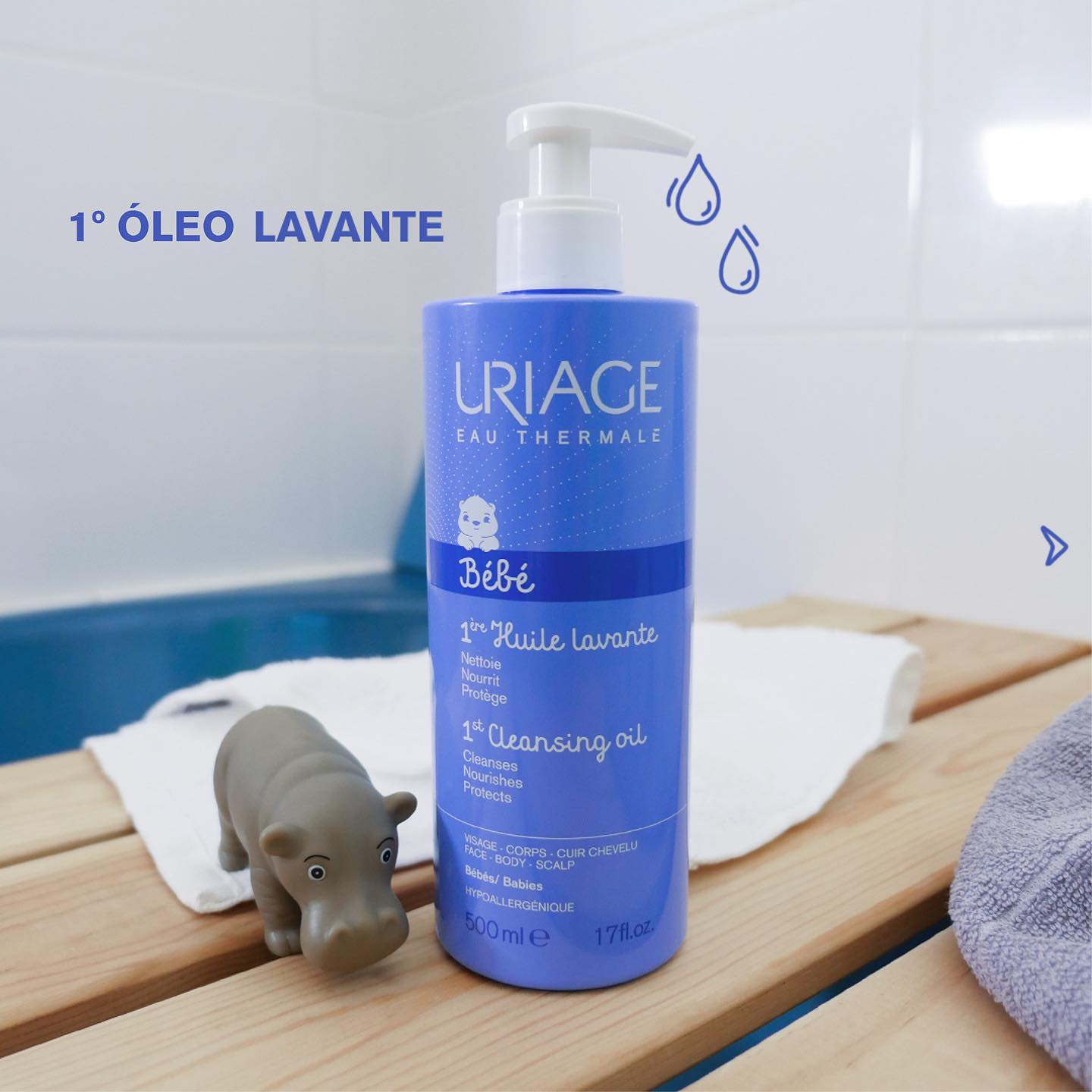 Uriage 1º Óleo Lavante nutre e limpa em suavidade a pele delicada do bebé.