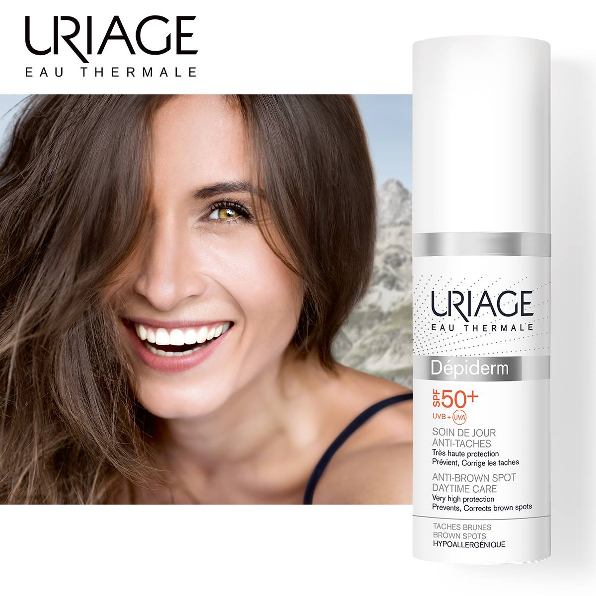 Uriage Dépiderm Cuidado Antimanchas SPF50+ é um cuidado de dia com ação despigmentante e proteção solar muito elevada.