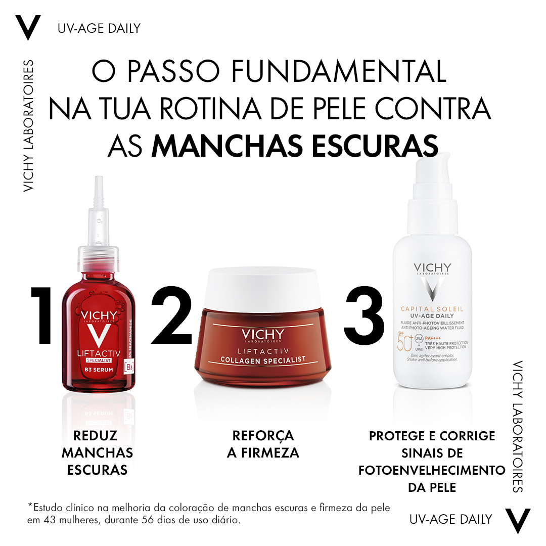 Vichy Liftactiv Specialist Sérum B3 Antimanchas Escuras é um sérum poderoso contra a formação de manchas escuras.